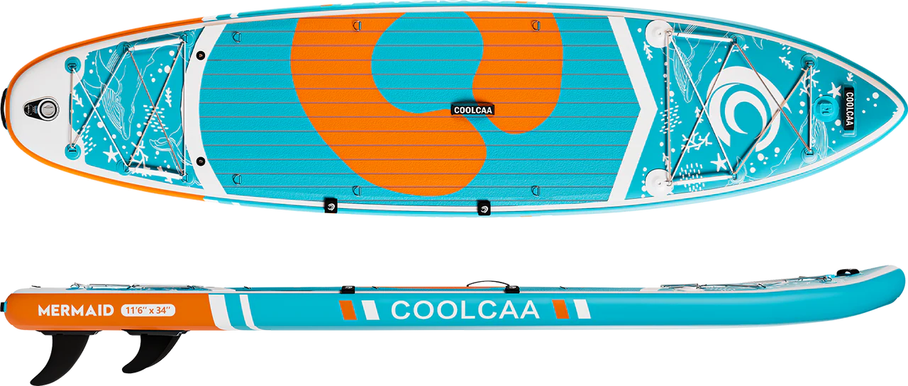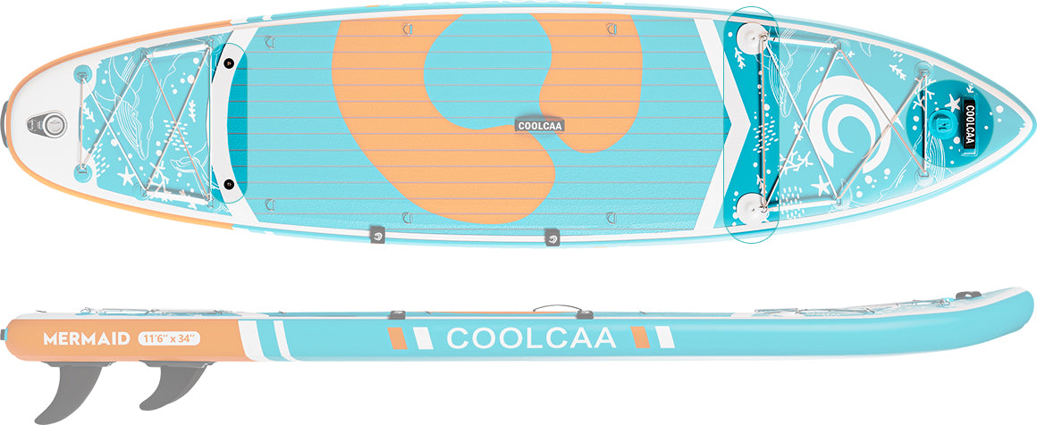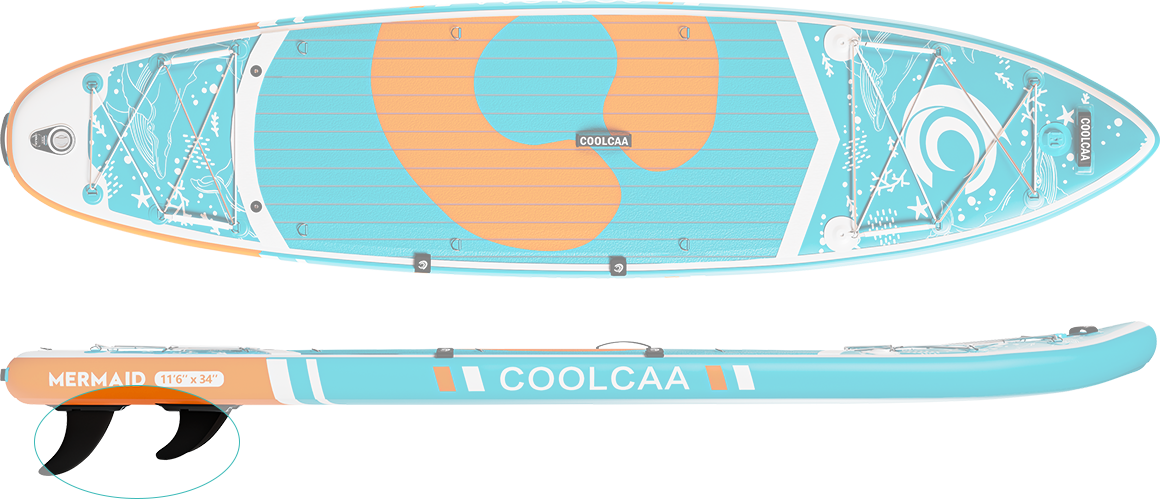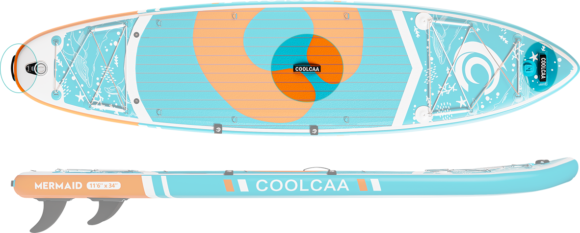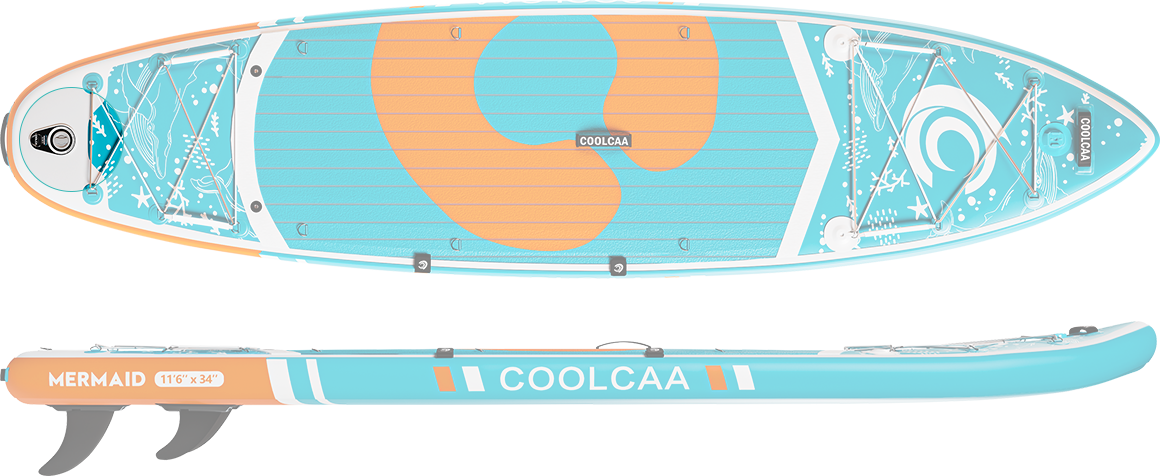 Dolphin series paddleboards have more features and upgraded accessories. The Mermaid Series boards are our most affordable boards and come with all the basics you need to get you out on the water. And the Dolphin will allow for multiple accessory applications and upgrades for versatility and design. The Dolphin series are made with three layers of military grade PVC, while the Mermaid is double PVC. This means the Dolphin boards have a higher weight capacity and offer better performance and durability.
