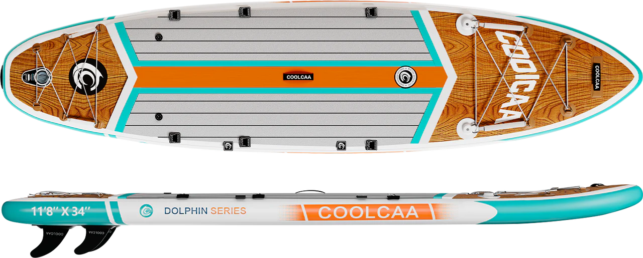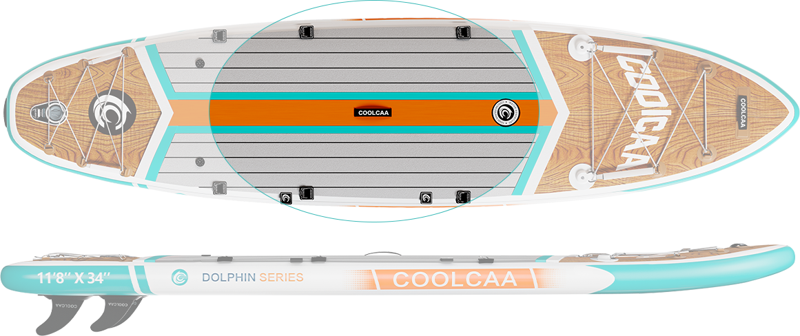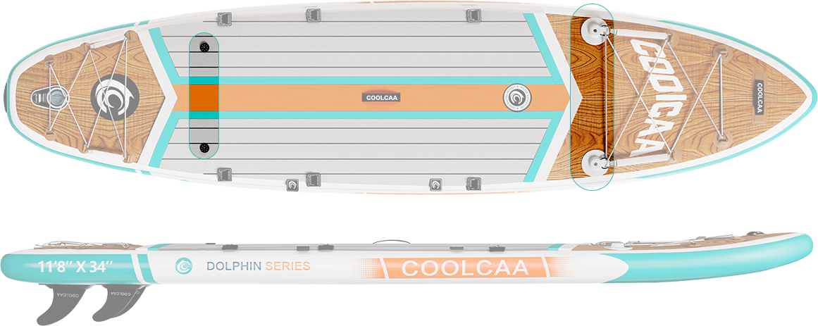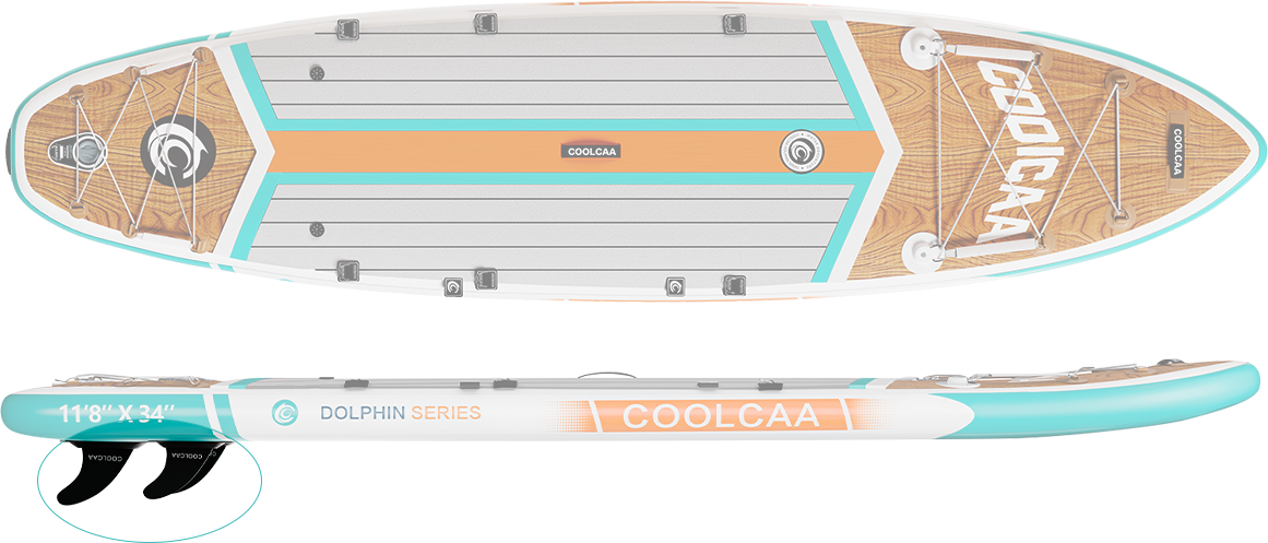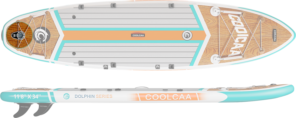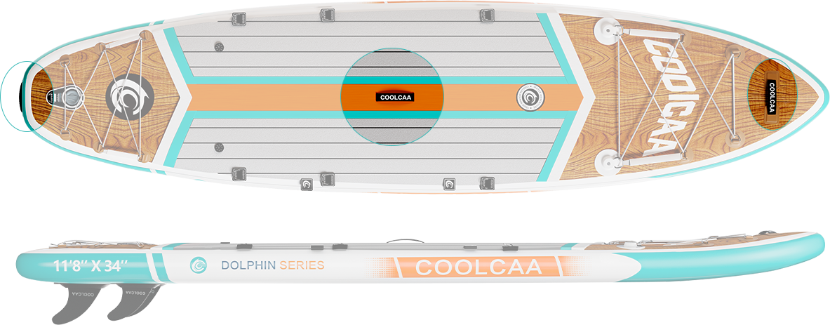 Dolphin series paddleboards have more features and upgraded accessories. The Mermaid Series boards are our most affordable boards and come with all the basics you need to get you out on the water. And the Dolphin will allow for multiple accessory applications and upgrades for versatility and design. The Dolphin series are made with three layers of military grade PVC, while the Mermaid is double PVC. This means the Dolphin boards have a higher weight capacity and offer better performance and durability.