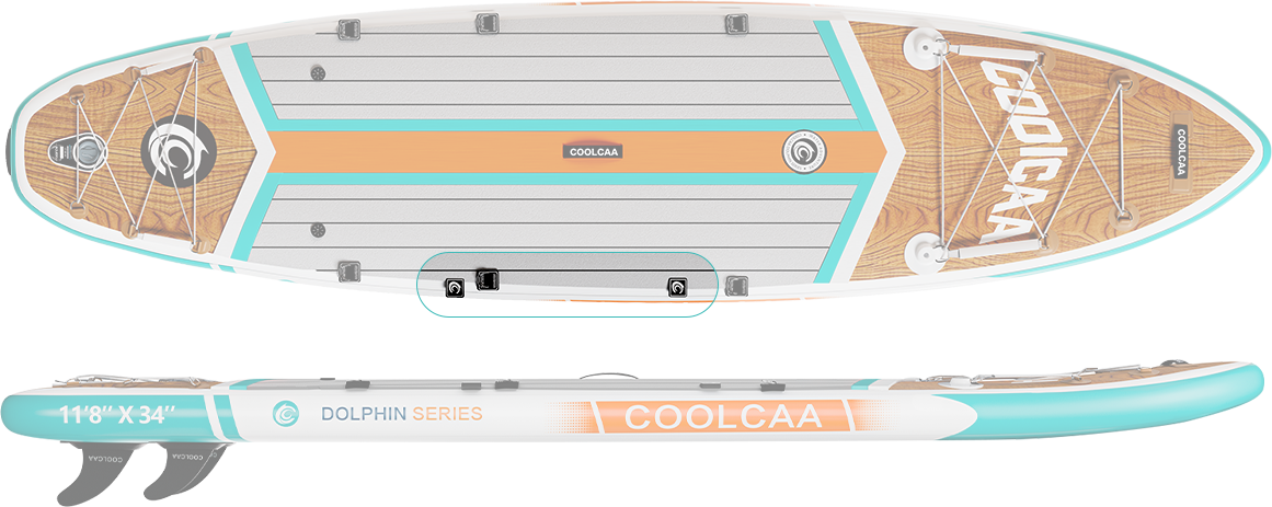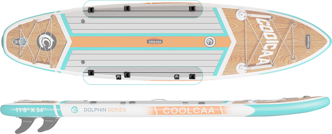 20 pieces steel D-rings around the board are perfect for quickly attaching a leash, a kayak seat or tying up to a boat or dock.
