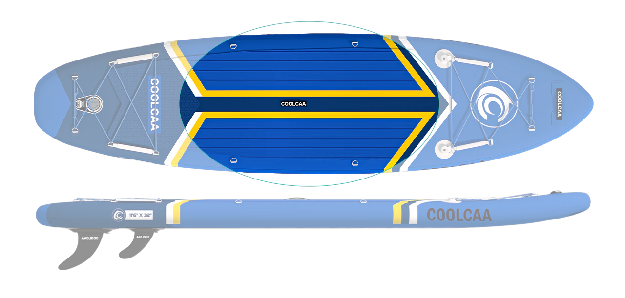 The brushed EVA traction pad enhances traction and optimizes comfort whether standing, kneeling or laying down. Ideal for kids, pets, yoga, and leisurely lounging.