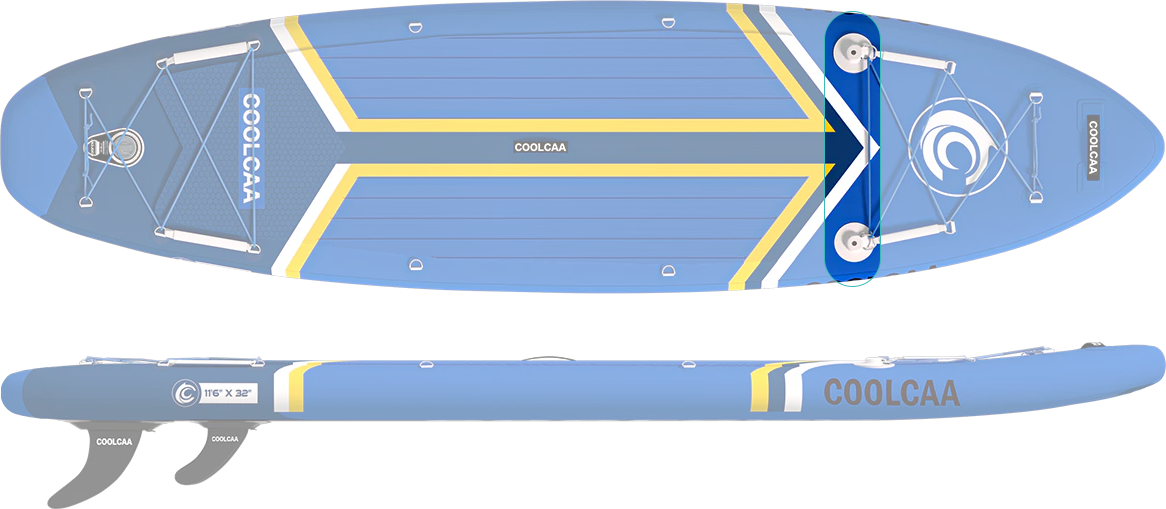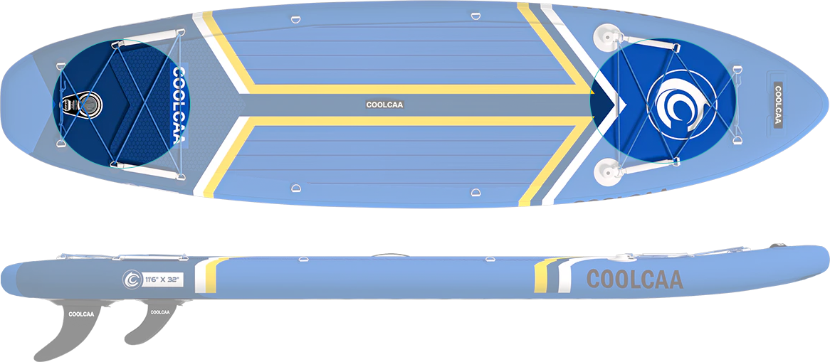 The Coolcaa Electric Sup Pump, sold exclusively on the Coolcaa website, is specially designed to inflate any Coolcaa board. It connects to a 12v car plug or marine battery and inflates the board to 15 Psi in about 10-12 minutes.